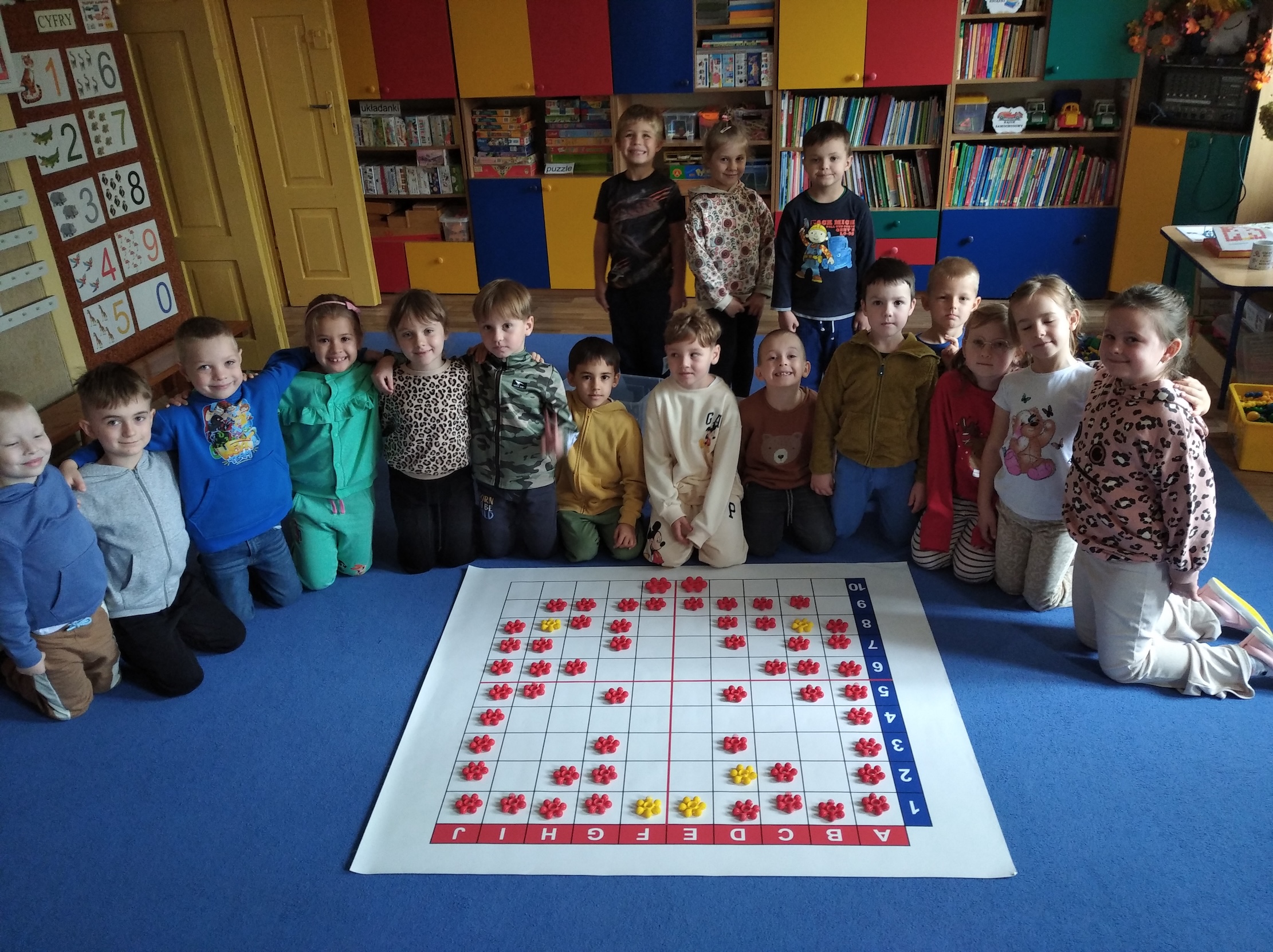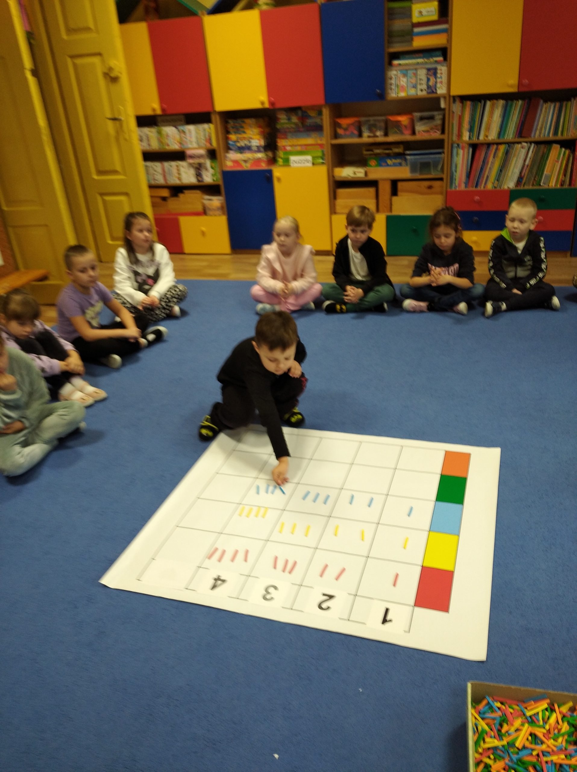 Zabawy edukacyjne Kodowanie na dywanie w Grupie Pszczółki